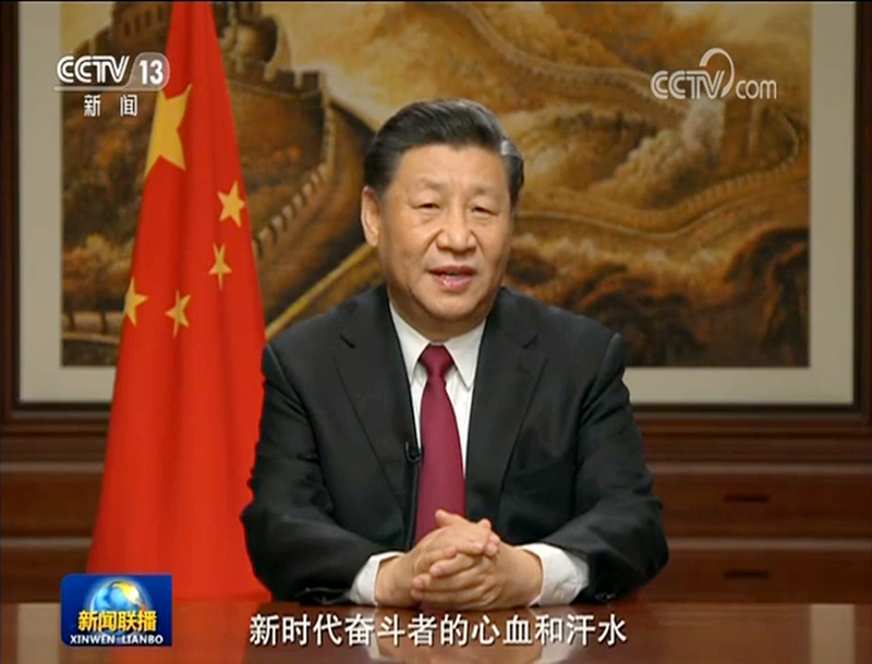 2019年,我们用汗水浇灌收获,以实干笃定前行。高质量发展平稳推进,我国国内生产总值预计将接近100万亿元人民币、人均将迈上1万美元的台阶。三大攻坚战取得关键进展。京津冀协同发展、长江经济带发展、粤港澳大湾区建设、长三角一体化发展按下快进键,黄河流域生态保护和高质量发展成为国家战略。全国将有340个左右贫困县摘帽、1000多万人实现脱贫。嫦娥四号在人类历史上第一次登陆月球背面,长征五号遥三运载火箭成功发射,雪龙2号首航南极,北斗导航全球组网进入冲刺期,5G商用加速推出,北京大兴国际机场“凤凰展翅”……这些成就凝结着新时代奋斗者的心血和汗水,彰显了不同凡响的中国风采、中国力量。