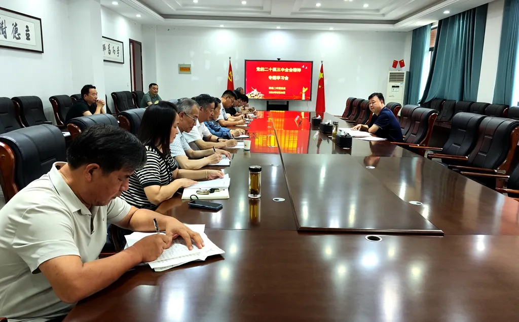 8月28日上午,寿县二中党总支在综合楼会议室召开理论学习中心组学习会,专题学习党的二十届三中全会精神。校党总支书记、校长汪洋主持会议并领学,理论学习中心组成员、行政组成员、年级部主任参加学习。